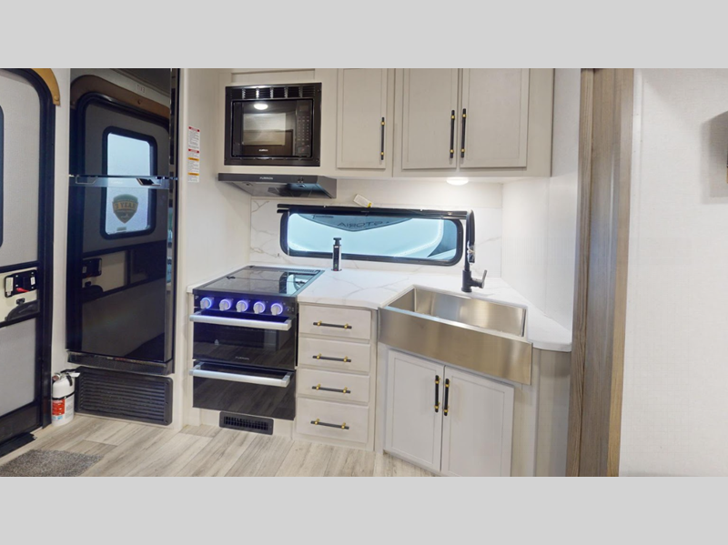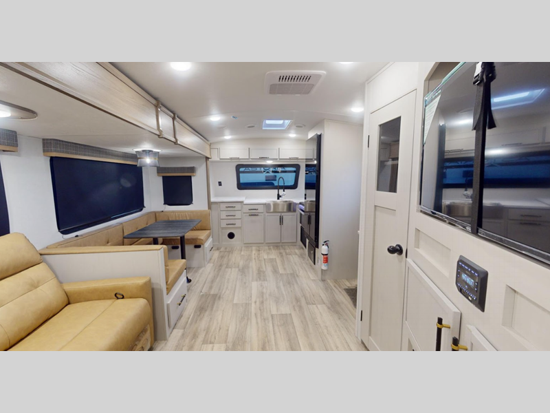 Sleeps 3 Slides 2 Length 31 ft 1 in Ext Height 11 ft 4 in Interior Color Bayport, Lexington Hitch Weight 795 lbs Dry Weight 7447 lbs Cargo Capacity 2143 lbs Fresh Water Capacity 44 gals Grey Water Capacity 78 gals Black Water Capacity 39 gals Furnace BTU 30000 btu Available Beds King Refrigerator Type 12V Refrigerator Size 10 cu ft Cooktop Burners 3 Number of Awnings 1 LP Tank Capacity 30 lbs Water Heater Type On Demand Tankless TV Info LR HD LED TV Awning Info 20' Axle Count 2 Washer/Dryer Available Yes Number of LP Tanks 2 Shower Type Standard Electrical Service 50 amp Similar Floorplans