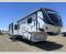 One look at this fifth wheel and you'll be sold. You'll find tons of counter space in the rear kitchen along with a kitchen island, a large pantry, and a hutch for even more storage. Visit in the main living area on the two theater seats and tri-fold sofa, or you may want to head outdoors under the two power awnings! There is even an outside refrigerator here to entertain guests. The spacious full bath will allow you to clean up after a day of adventuring, and here you'll find a full-size shower with sliding glass doors and a seat, plus a dual sink vanity. The front private bedroom will feel just like home with its king bed slide out, large wardrobe, and dresser to keep your clothes tidy.